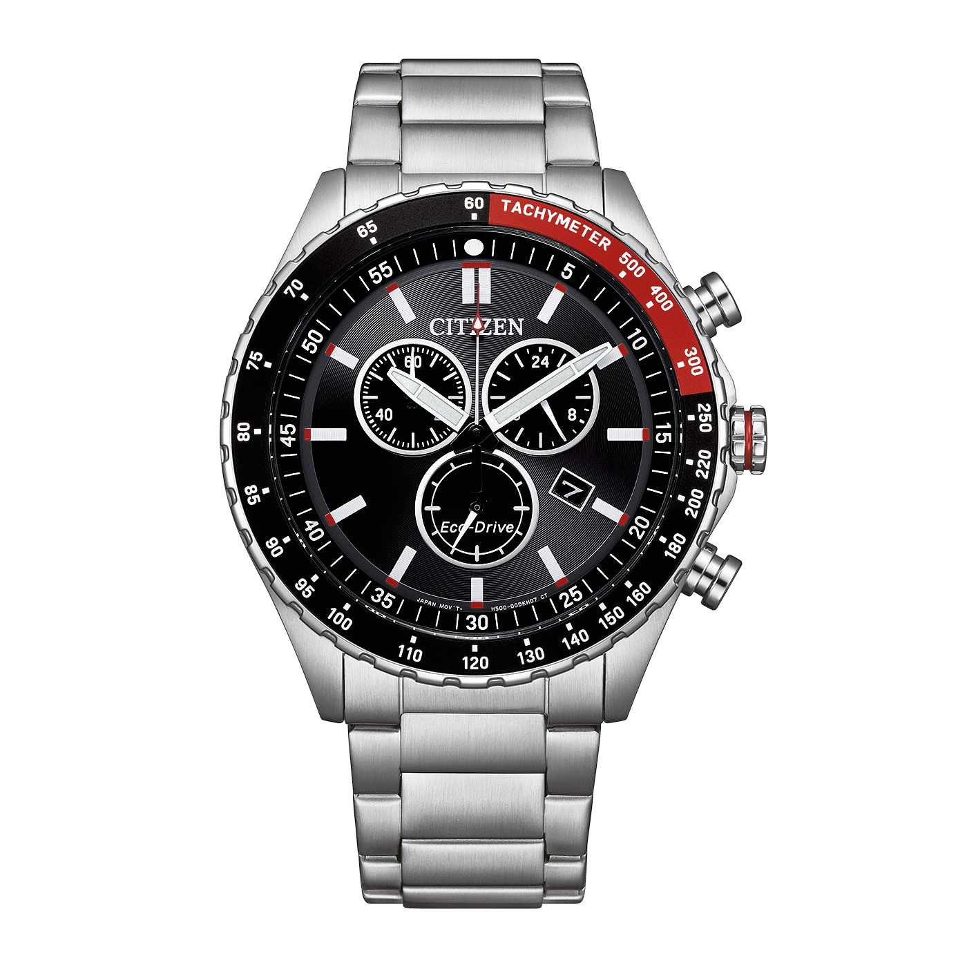 Stoppuhr: max. 60 min,1/1 sec, Datum, Anzeige der Batterieentladung, 24h Anzeige, Eco-Drive, +/- 15 Sek per Monat, 150 Tage