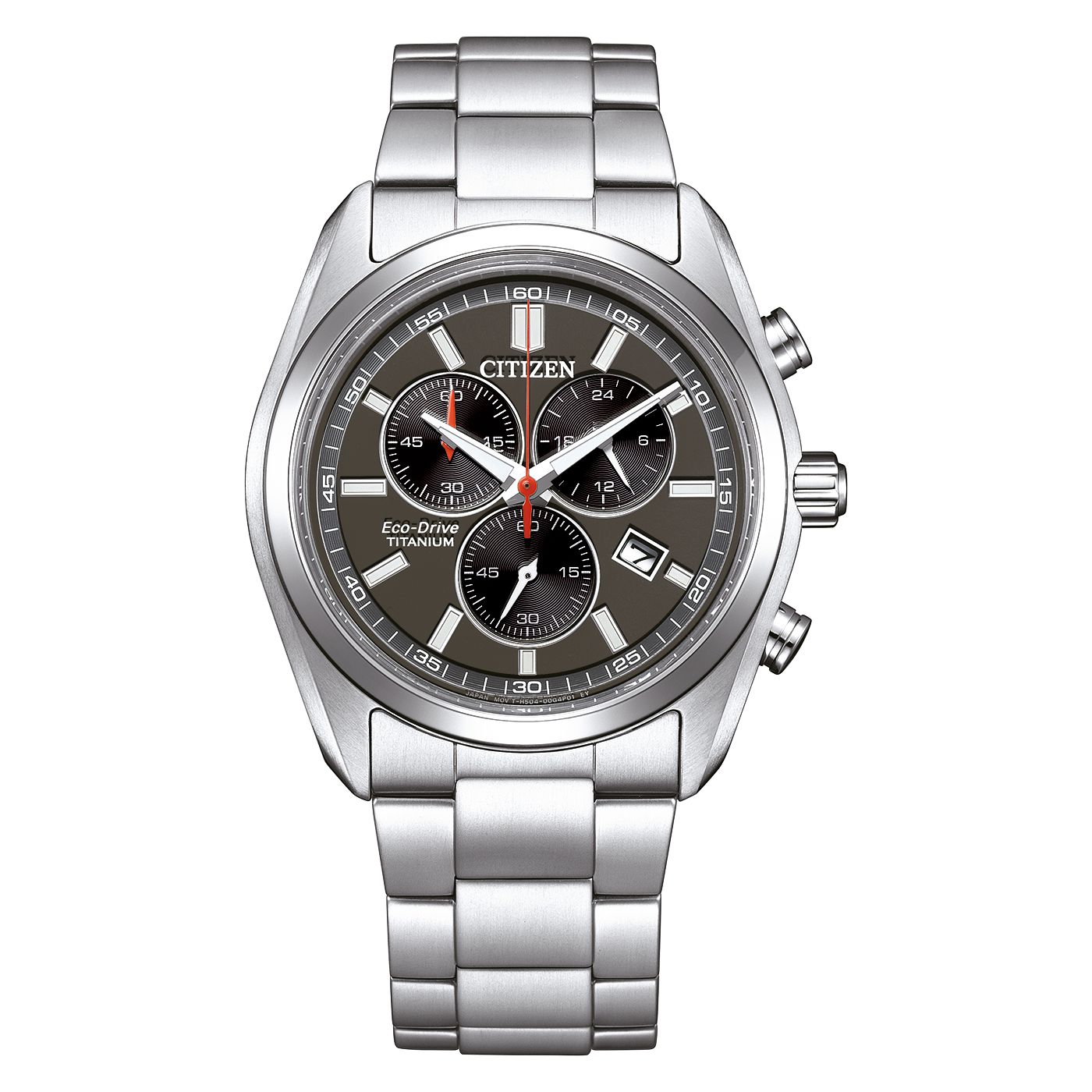Der neue Super Titanium Chronograph AT2590-59E von CITIZEN vereint zwei Meilensteine in einer Uhr – das ultraleichte Titangehäuse und das umweltfreundliche Eco-Drive-Werk H504. Seit 1970 steht CITIZEN für Pioniergeist und nachhaltige Technik, die Sie im Alltag spüren können. Mit nur 10,29 mm Gehäusehöhe trägt sich diese 40-mm-Uhr besonders angenehm und sorgt dank Solarenergie für eine Gangreserve von 180 Tagen – ganz ohne Batteriewechsel.